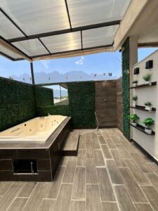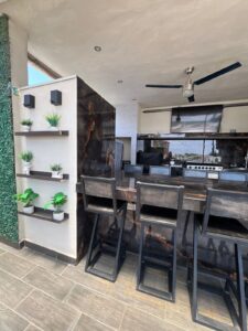 Cocina exterior equipada | Asador | Barra | Jacuzzi.Además, cuenta con 2 bodegas para almacenamiento.